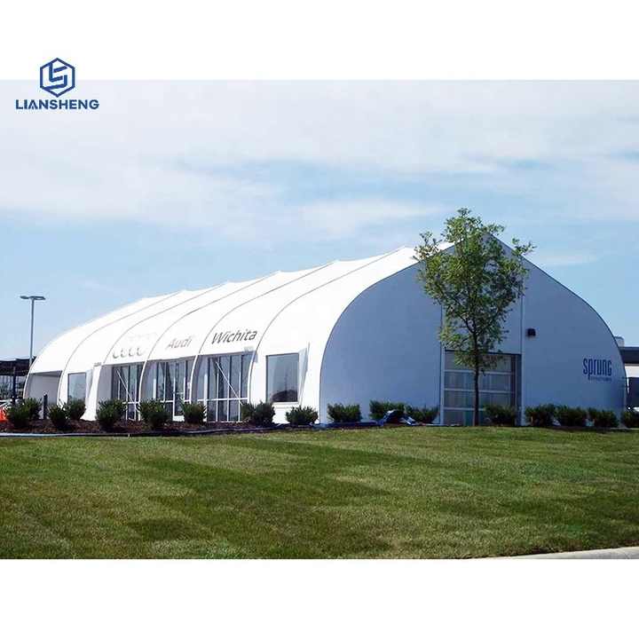 Энергоэффективность и комфортная внутренняя среда. Дугообразная крыша минимизирует накопление тепла летом, отражая солнечный свет (благодаря покрытию, устойчивому к ультрафиолетовому излучению), а утолщенная ткань (обычно толщиной 0,6-0,8 мм) обеспечивает эффективную теплоизоляцию зимой, уменьшая зависимость от отопительного или охлаждающего оборудования. Для повышения комфорта палатка может быть оснащена дополнительными аксессуарами, такими как боковые стенки (прозрачные или непрозрачные), вентиляционные окна или системы HVAC, создавая хорошо вентилируемое пространство с контролируемой температурой, отвечающее потребностям мероприятий, рабочих мест или временных жилых помещений.